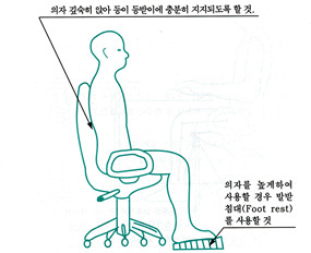 4. 의자에 앉을 때는 의자 깊숙히 앉아 의자등받이에 등이 충분히 지지되도록 할 것(그림 5)
